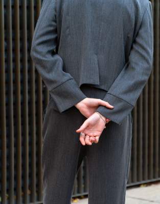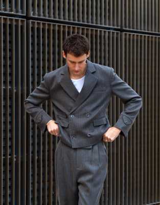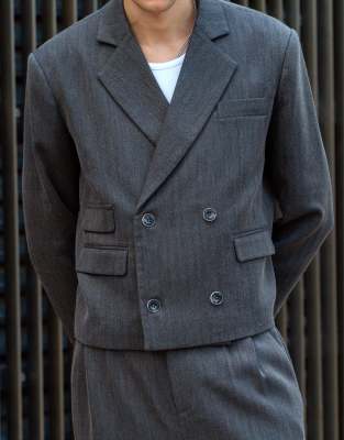 Labelrail x Isaac Hudson cropped boxy double breasted blazer co-ord in grey