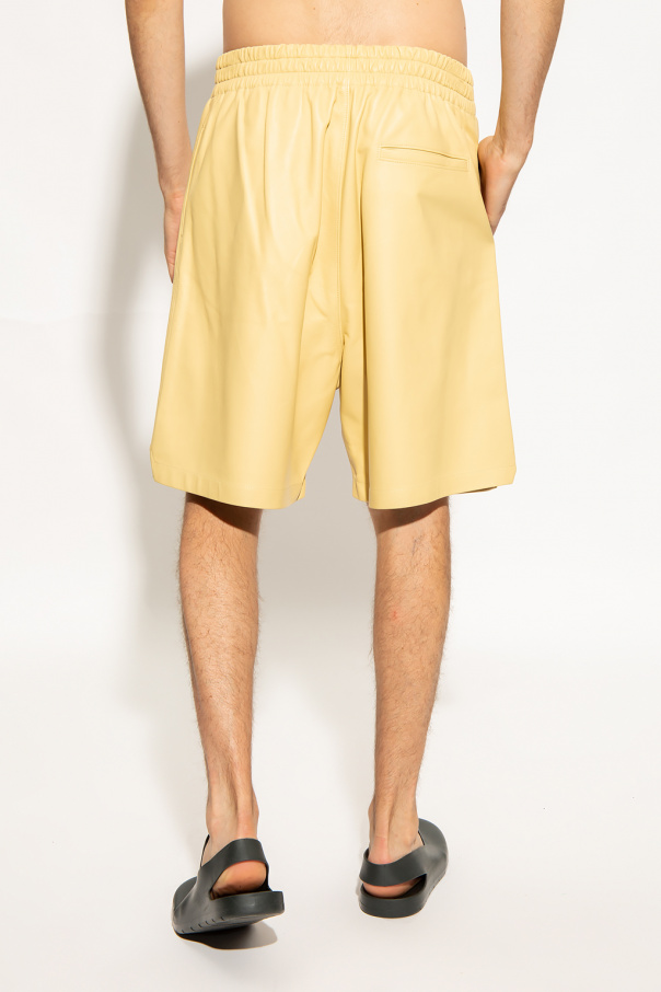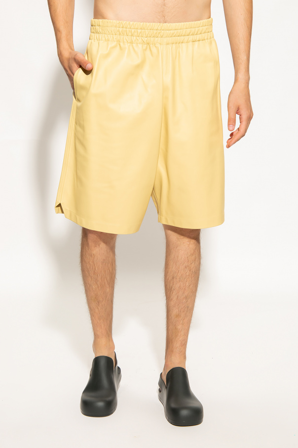 Light beige shorts from Bottega Veneta. Made from lamb leather, this pair features an elastic waistband and three slip pockets.