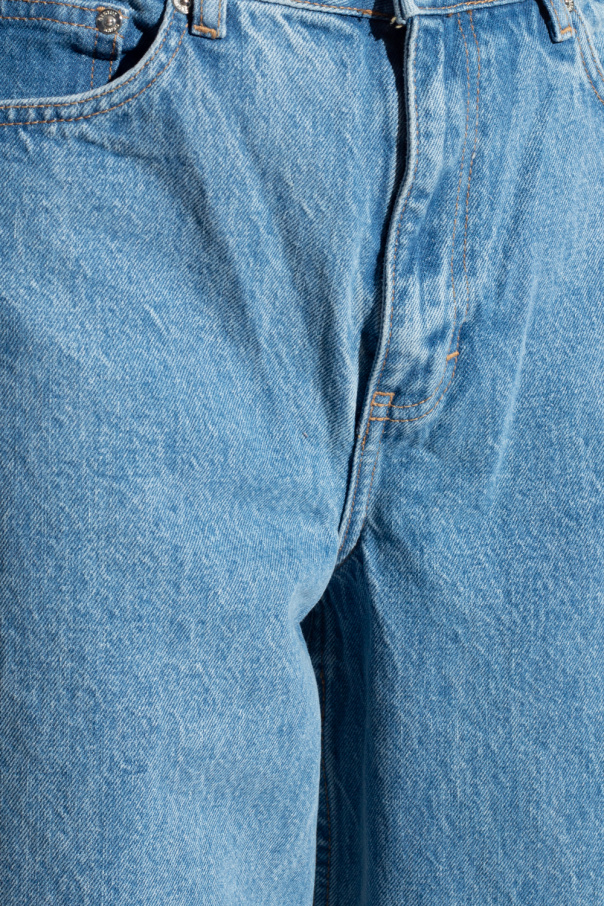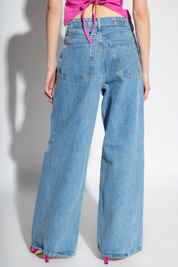 Blue ‘ElmaGZ’ jeans from Gestuz. Cut with a high-rise waist, this pair falls with wide legs and features a stonewashed effect, a zip fly with a button, classic five pockets and an embroidered brown logo at the back.