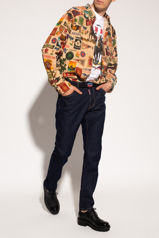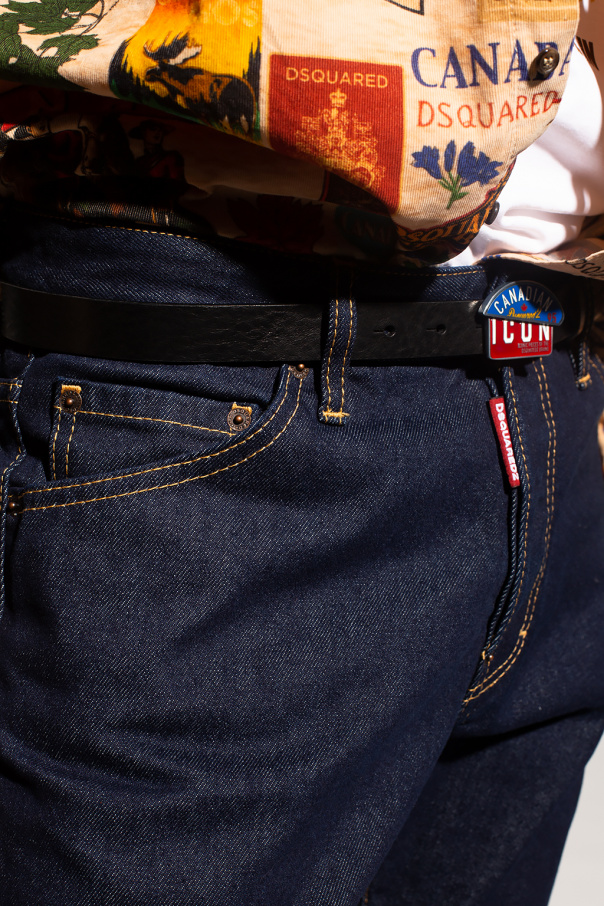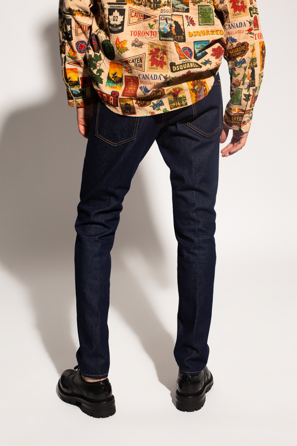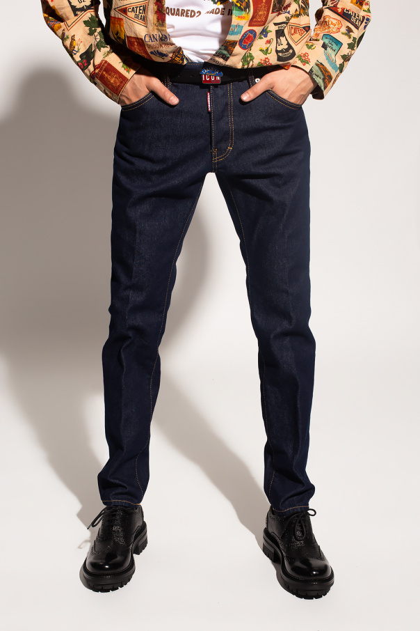 Navy blue ‘Cool Guy’ jeans from Dsquared2. Falling down with slightly tapered legs, this pair features button fastenings and classic five pockets.