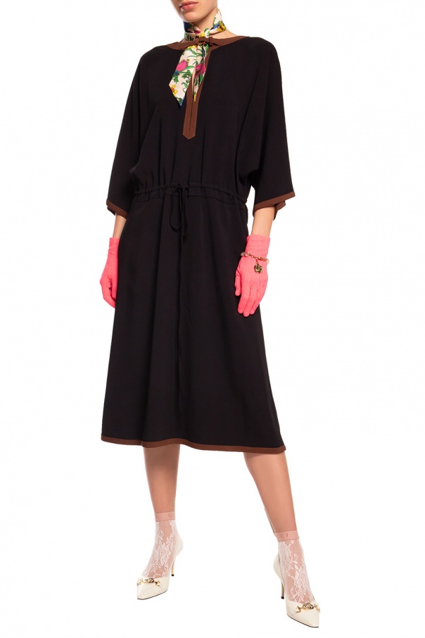 Cream 'Zumi' pumps from Gucci. Made of leather. Embellished with gold-tone and silver-tone logo metalware. Seated on a beige leather sole.