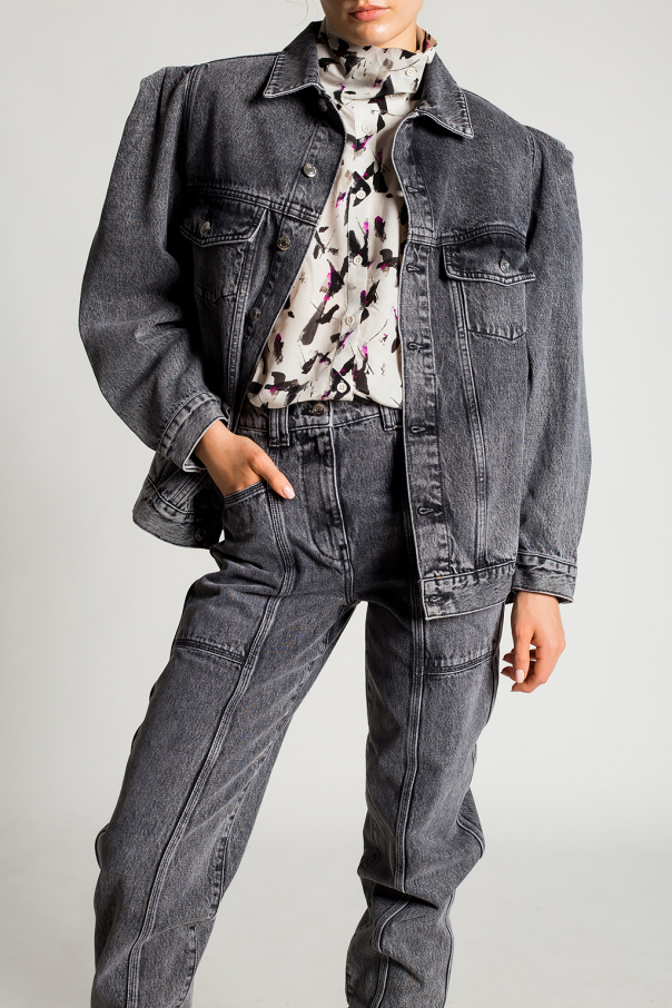 Grey denim jacket from Iro. Fastened with silver-tone buttons, this style features puff sleeves, two slip pockets and two flapped pockets with button closures.