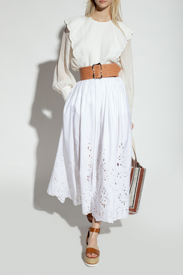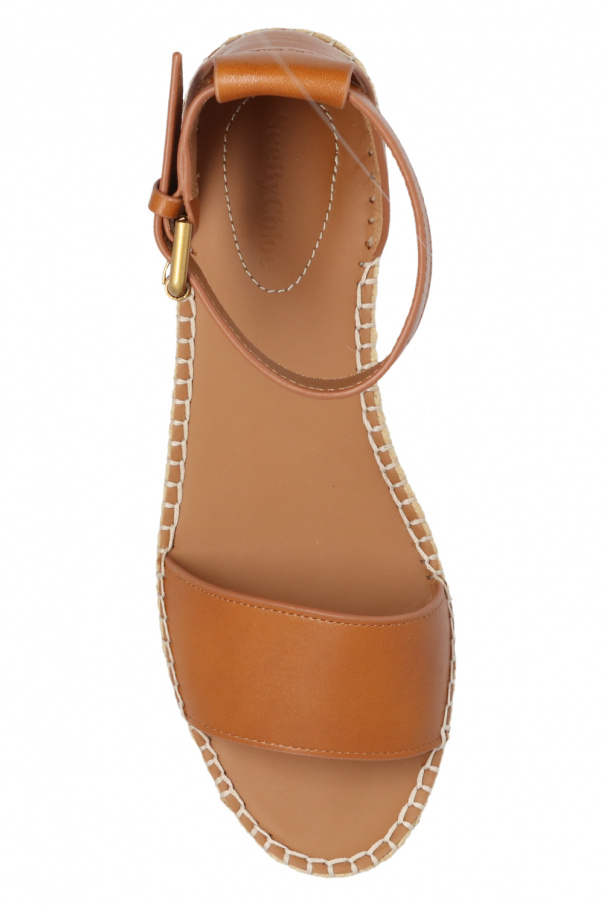 Brown and beige 'Glyn' platform sandals from See By Chloé. Crafted from calf leather, this model features a leather ankle strap with a buckle, gold-tone metal hardware and a white rubber sole.