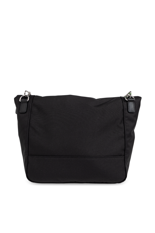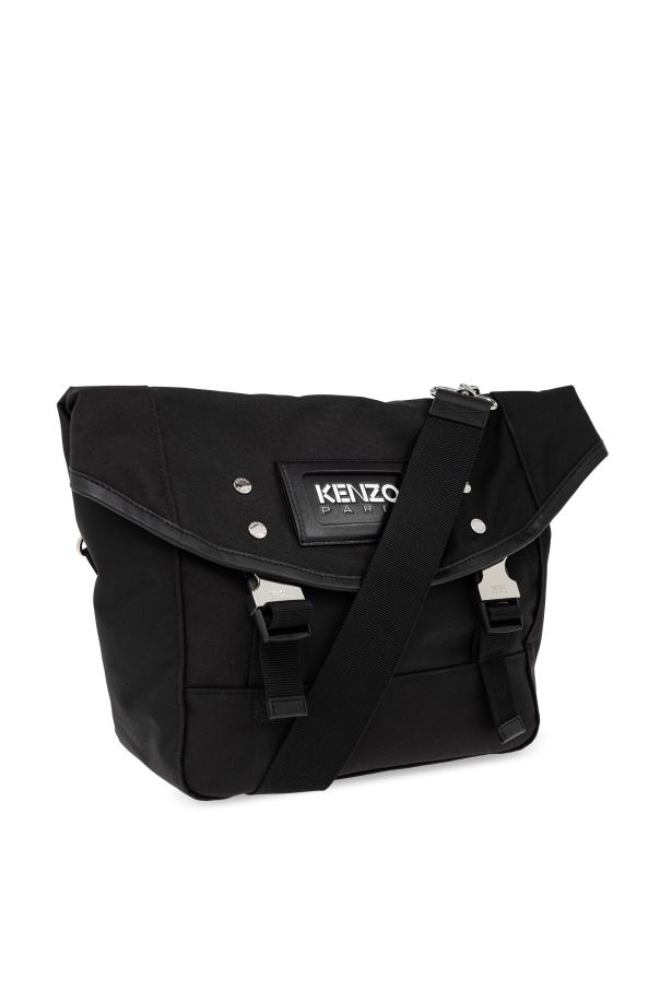 Introducing the quintessence of sophistication and functionality - the Kenzo Logo Shoulder Bag. Crafted from a durable material with a sleek, smooth texture, this bag exudes elegance in its purest form. Its rectangular silhouette with softly rounded corners offers a modern touch to any ensemble. The front flap of this exquisite piece showcases a prominently embossed logo, surrounded by metallic rivets that catch the eye amidst a darker patch, creating a striking contrast. This detail not only anchors the bag\'s design but also highlights the meticulous attention to detail that Kenzo is renowned for. Designed for versatility and ease, it features an adjustable shoulder strap adorned with lettering on the buckles, enhancing its exclusivity. The bag\'s non-zip closure opens to reveal a spacious interior, complete with a compartment and a slip pocket, ensuring practicality alongside its high-fashion appeal. Its snap closure ensures your belongings are secure, yet easily accessible. Dressed in an alluring black, this shoulder bag is a testament to timeless style, seamlessly blending with a range of outfits while making a subtle yet significant statement. Why Purchase This Product? Exclusive Kenzo design, embodying luxury and high fashion. Robust construction with a focus on elegant aesthetics and practicality. Eye-catching embossed logo and metallic details for an added touch of sophistication. Adjustable and detailed shoulder strap for comfortable wear. Secure snap closure with an ample interior for everyday essentials.