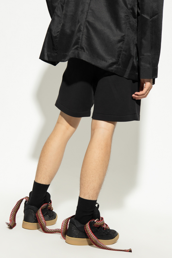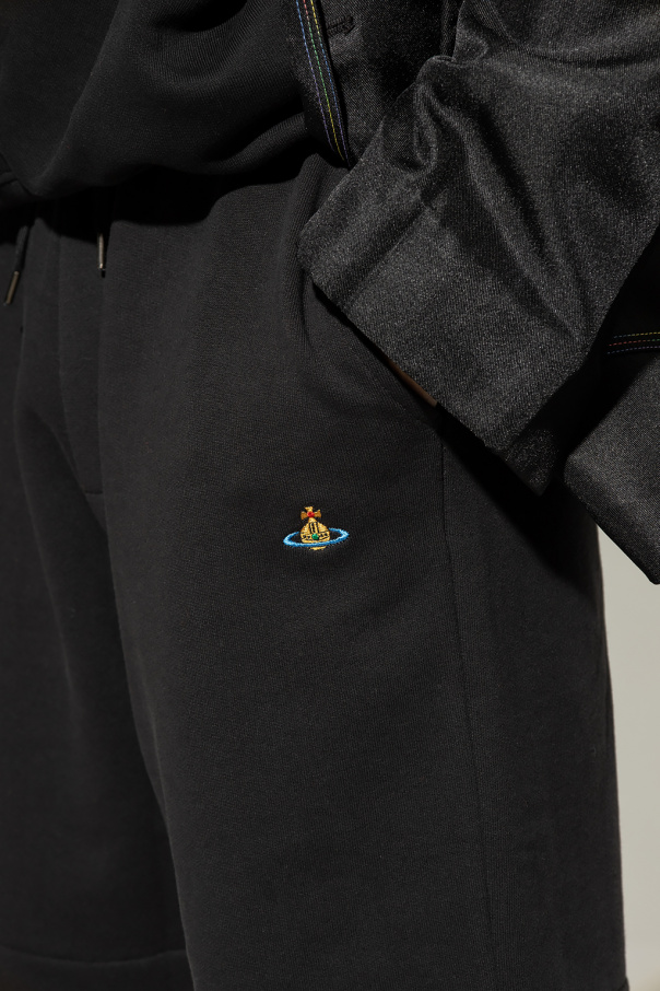 Black shorts from Vivienne Westwood. Crafted from cotton, this pair features a drawstring waist, multicolored logo embroidery, two front pockets and one back pocket.