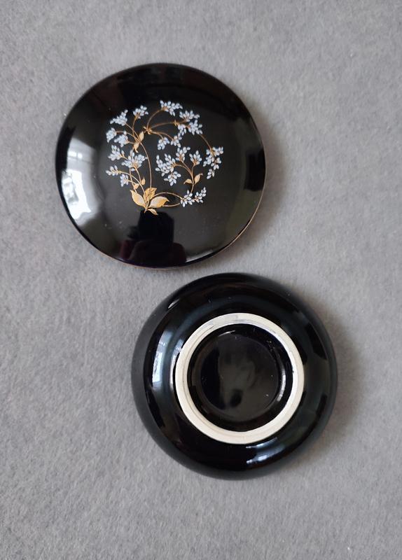 Очень красивая! Для истинных ценителей искусства и винтажных вещей, такие вещи всегда отражают дух времени культуры и искусства! Изящная роспись цветов золотистым и белым по черному, это всегда розкошно и по королевски!