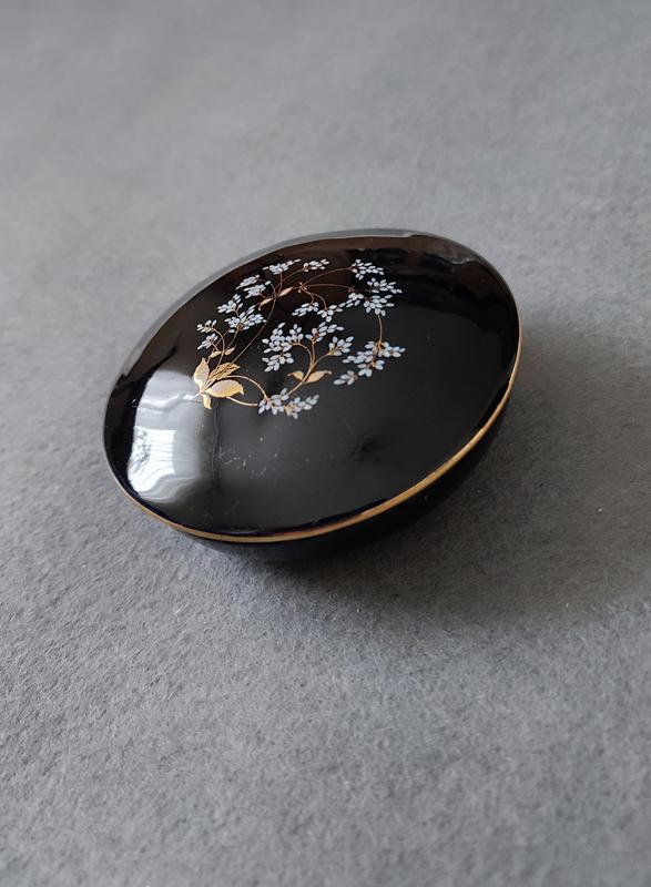 Дуже красива! Для істинних поціновувачів мистецтва і вінтажних речей які завжди відтворюють дух часу культури і мистецтва! Витончений розпис квітів золотистим і білим по чорному, це завжди розкішно і по королівськи !