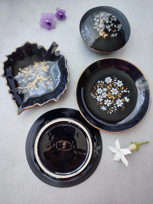 Винтажная фарфоровая-керамическая, шкатулка для украшений с ручной росписью цветов,Limoges Decore A La Main, Франція ( клеймо на самій шкатулці відсутнє але є з цієї коллекції точно такі ж підставочка в вигляді листочка для прикрас і декору з клеймом , дивіться в моїх оголошеннях ці всі предмети )