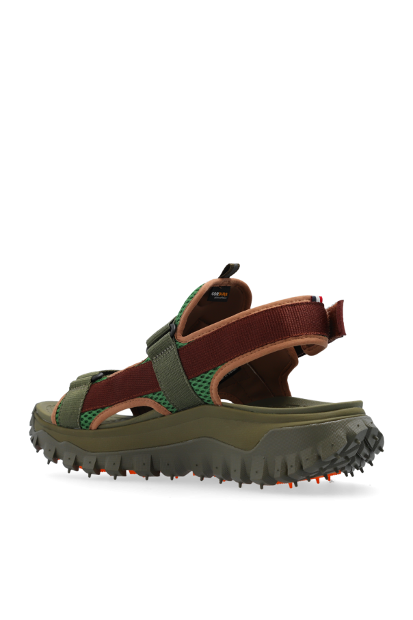 Introducing the ‘Trailgrip’ Sandals by Moncler, a testament to innovative design and refined aesthetics. Crafted with a focus on durability and comfort, these sandals feature a robust outer and inner layer of high-quality material, complemented by a sole made entirely of rubber. The dominant olive green hue is tastefully accented with rich burgundy, while the sole boasts a dark olive shade with striking orange details. The open construction, characterized by multiple straps, ensures both stability and support for the foot. The distinctive tread pattern on the sole is engineered to provide exceptional grip across various terrains. Adjustable velcro straps allow for a customized fit, and reflective elements on the straps enhance visibility in low light conditions. The prominent designer logo on one of the straps serves as an unmistakable mark of luxury and quality. Why Purchase the ‘Trailgrip’ Sandals? Engineered for optimal comfort and durability with high-quality materials. Unique tread pattern for superior grip and safety on diverse surfaces. Adjustable straps with velcro ensure a perfect fit for all foot sizes. Designed with reflective elements for improved visibility during evening walks or treks. Embellished with the distinctive Moncler logo, symbolizing elegance and exclusivity.