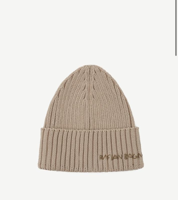 Шапка состоит из 100% хлопка, чистого бежевого оттенка и широкого отворотного манжета, украшенного ручной вышивкой Руслана Багинского.