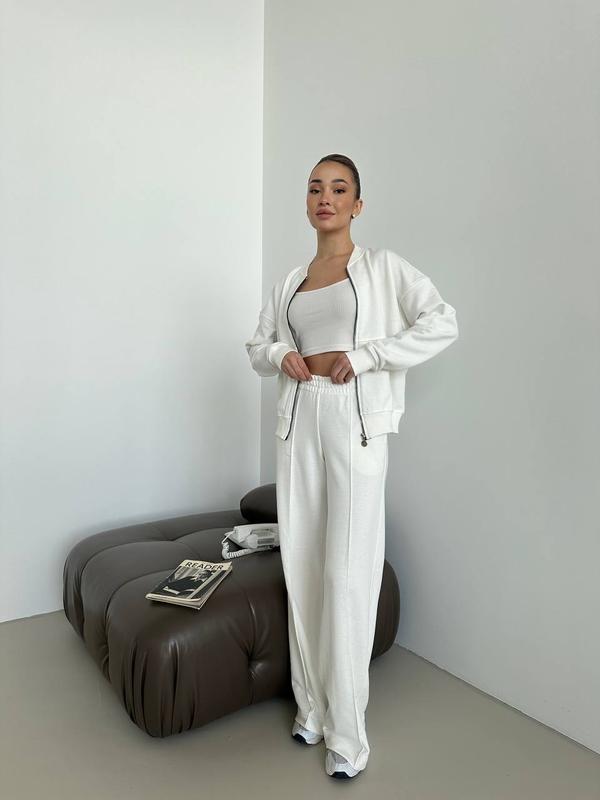 Наша новинка це поєднання стилю та комфорту!!!Дуже якісний пошив!! Гарна посадка!!! Бомбер та штани палаццо зроблені з натуральної тканини бавовни Виробник Турція , тринитка петля склад 95/5 Якість Преміум 💯
