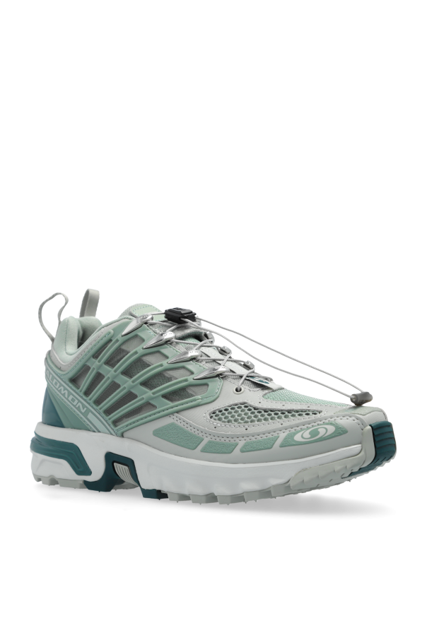 Introducing the ACS PRO – an exquisite addition to our exclusive collection of women\'s sport footwear. These low-profile sneakers, crafted by the renowned brand Salomon, embody a harmonious blend of elegance and performance, adorned in a sophisticated palette of varying shades of gray with mint and dark green accents. The ACS PRO boasts a dynamic, sporty silhouette, featuring a multi-layered upper construction with prominent supportive and protective elements. The upper is meticulously crafted from lightweight synthetic and textile materials, ensuring superior breathability and durability. The shoe\'s deep, thickly profiled rubber sole provides exceptional cushioning and grip, making it ideal for diverse activities. These sneakers are designed with intricate reinforcements and stitching, imparting a modern, technical aesthetic. The quick-lacing system with a cinch mechanism offers convenience for swift wear and removal. Subtle logos and branding on the tongue and side panels accentuate the product\'s premium quality. Additionally, the ACS PRO features a heel loop for easy donning and a soft inner lining for enhanced comfort. Salomon, established in 1947 in the French Alps by George Salomon and his visionary parents, has been synonymous with innovation in sports gear, ensuring their footwear delivers unmatched comfort, durability, and top-tier quality. Why Choose This Product? Exceptional Comfort: Thickly profiled sole with excellent cushioning. Lightweight and Breathable: Synthetic and textile upper materials ensure ventilation. Advanced Design: Modern, technical look with quick-lacing system. Durability: High-quality construction and materials for long-lasting use. Easy to Wear: Heel loop and quick-lacing mechanism for convenience.