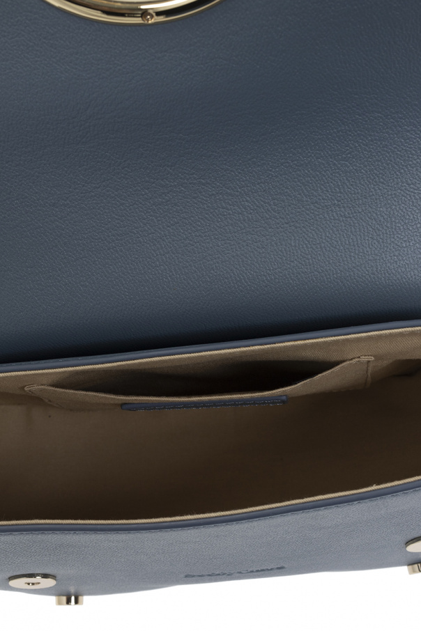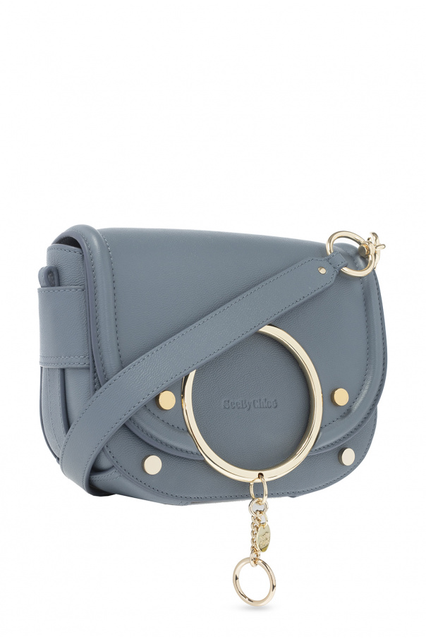 Greyish blue ‘Mara’ shoulder bag from See By Chloé. Made of cow leather, this model features a magnetic snap, embossed logo, decorative ring with charms, detachable and adjustable strap, gold-tone metal hardware and one internal compartment with one slip pocket.