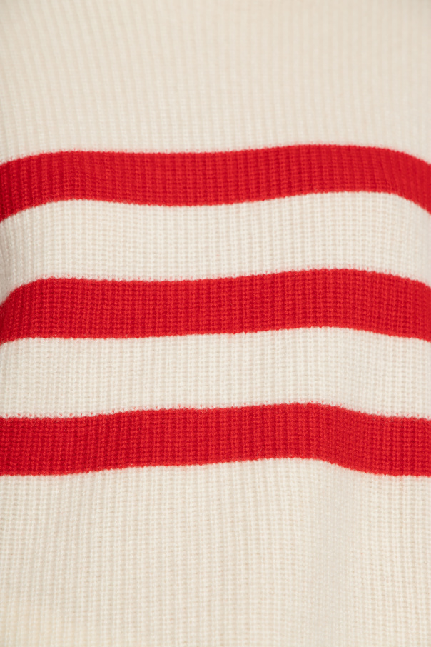 Cream ‘Francisco’ loose-fitting turtleneck sweater from Birgitte Herskind. Made of cashmere, this design features a red stripe pattern and long sleeves with decorative slits.