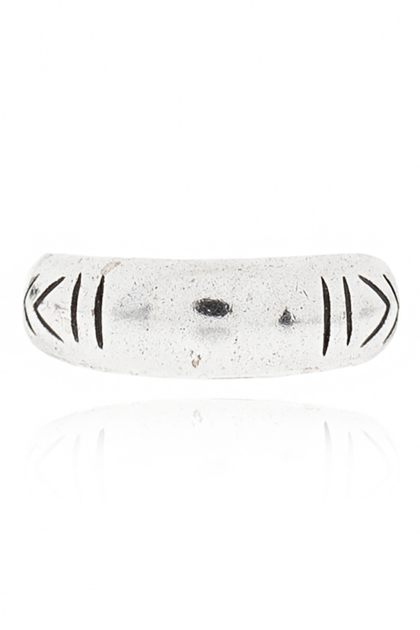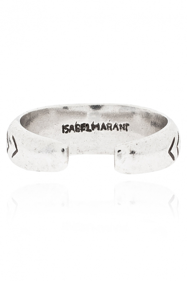 Silver-tone ring from Isabel Marant. Made of brass, this item showcases an embossed logo pattern.