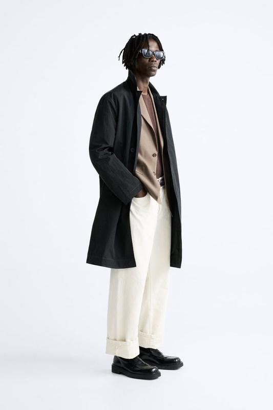Прорізні кишені на стегнах і внутрішня кишеня.