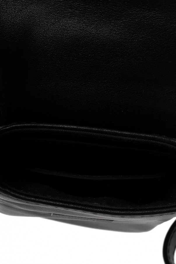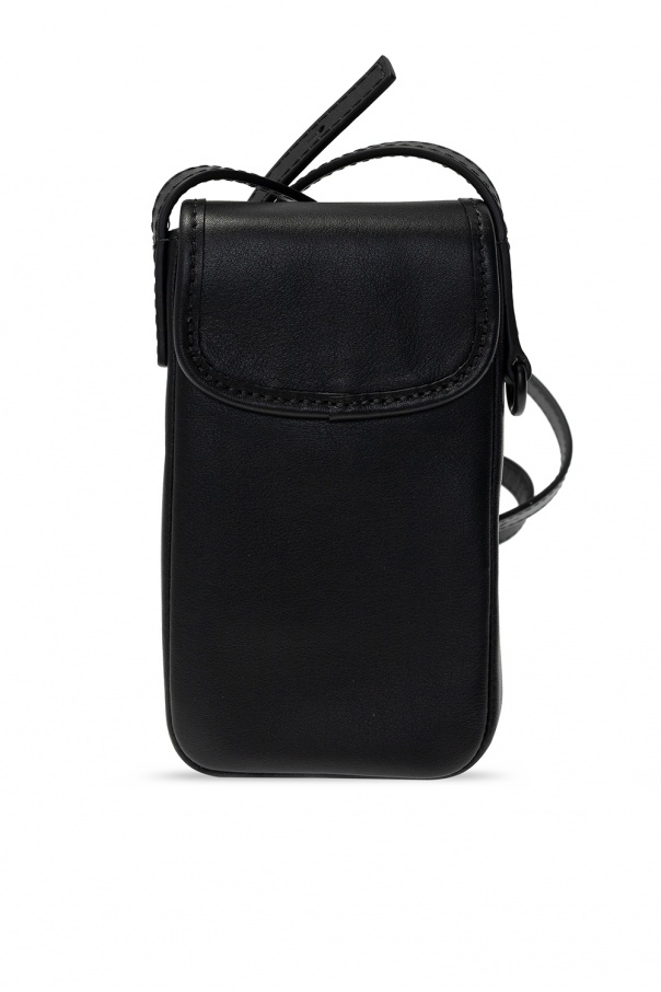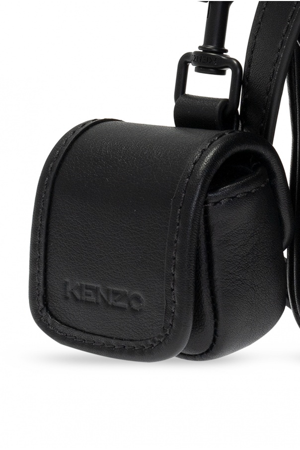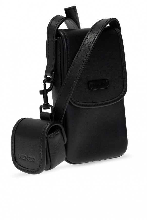 Black phone holder with a detachable Airpods case from Kenzo. Fastened with a magnetic snap, this leather-crafted item features a logo appliqué, adjustable strap, back slip pocket and one internal compartment with one slip pocket.