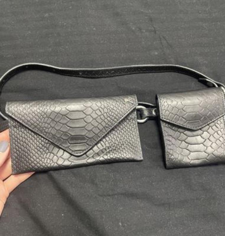 Длина большего отдела: 15 см, меньшего: 8 см, ширина обеих: 10 см. Каждый отдел можно отцепить и носить отдельно от другогоСостояние: ИдеальноеЦвет:- Чёрный