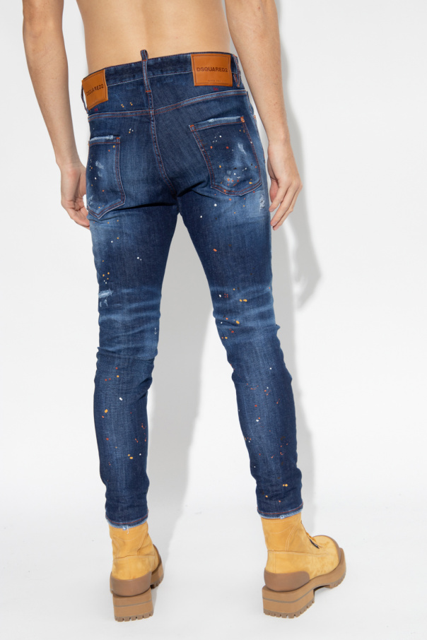 Dark blue ‘Relax Long Crotch’ jeans from Dsquared2. Crafted from cotton with a vintage treatment and paint spots, this pair features button fastenings, classic five pockets and a back patch with an embossed logo.