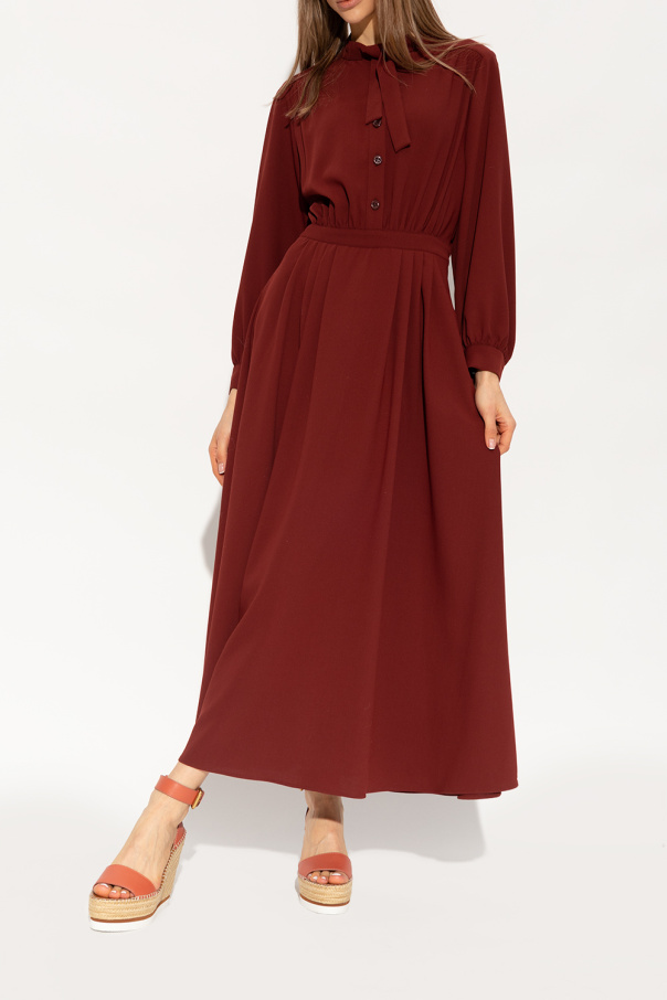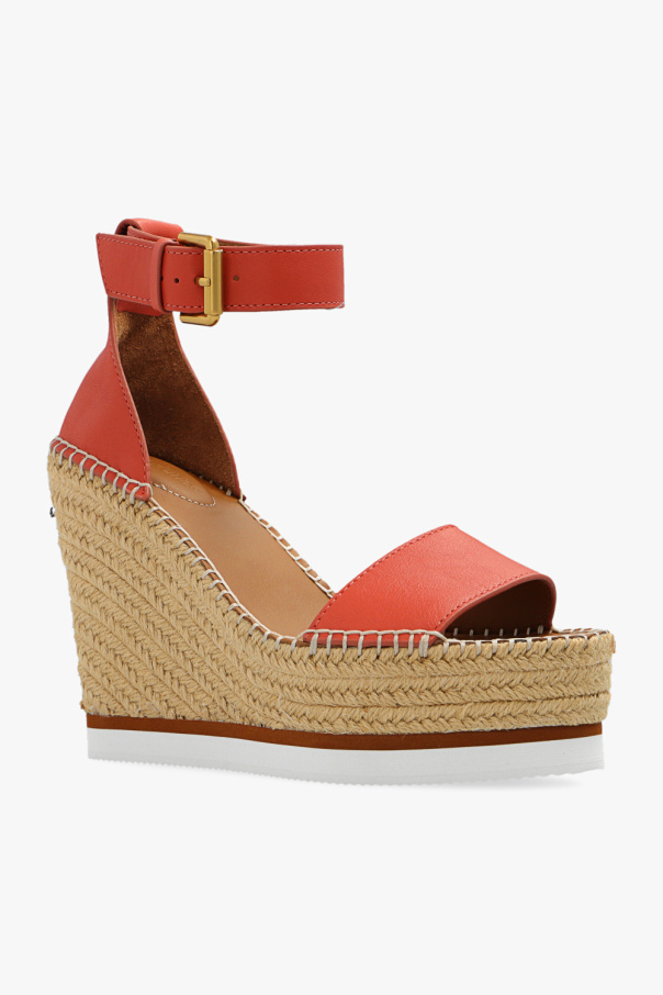 Dark orange \'Glyn\' wedge sandals from See By Chloé. Made of leather, this model features an brown leather ankle strap with a buckle and a white, brown and beige rubber sole with a jute overlay.