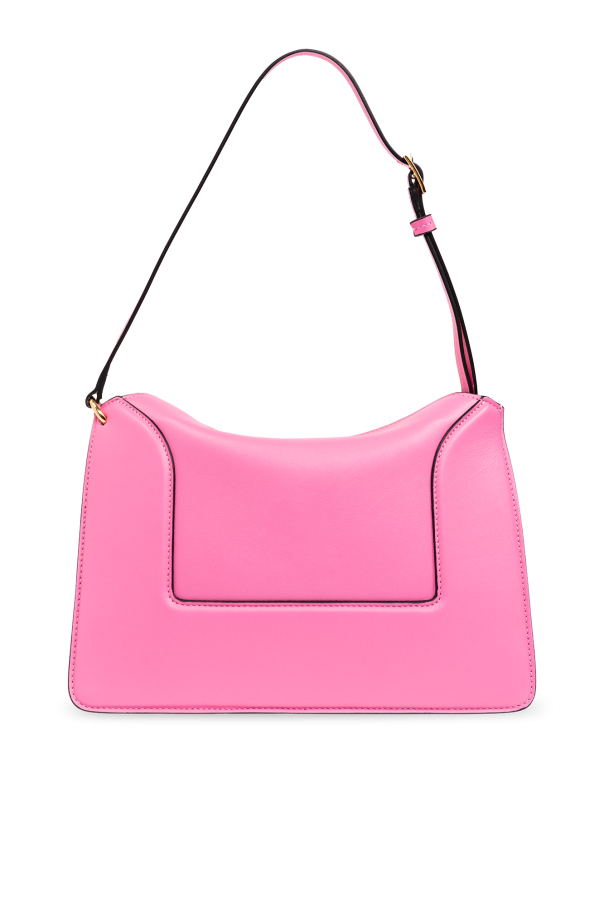 Pink ‘Penelope’ shoulder bag from Wandler. Made from smooth calf leather, this design secures with magnetic closures and showcases a printed gold-tone logo on the front, gold-tone metal hardware, two separate internal compartments and a long, adjustable shoulder strap.