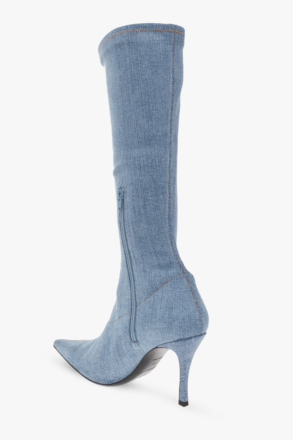 Light blue ‘D-VENUS KBT’ heeled boots from Diesel. Fastened with a zip, this pair features a pointed toe and black leather sole.