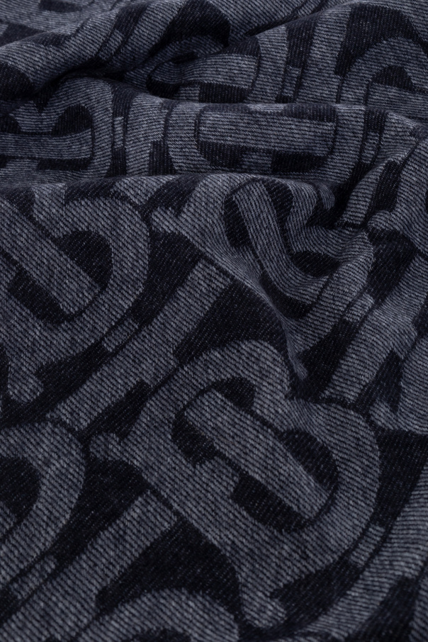 Multicoloured reversible scarf from Burberry. Made of cashmere and detailed with fringes. One side is navy blue and showcases an embroidered ‘TB’ monogram. The other side is beige and features the brand's signature check pattern in white, black and red.