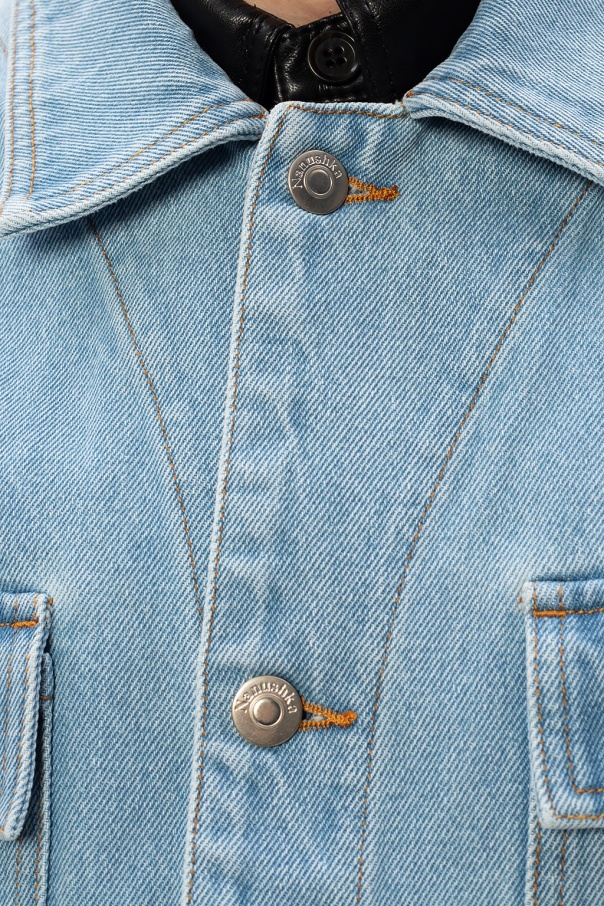Light blue denim jacket from Nanushka. Fastened with buttons, this design features two slip pockets, two buttoned flap pockets and long sleeves with button cuffs.