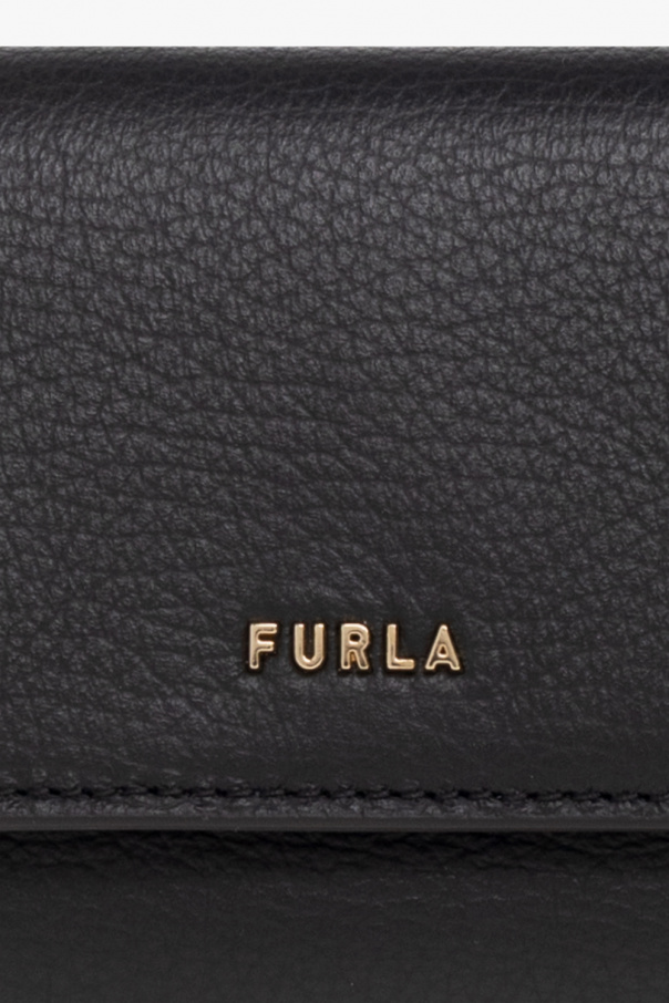 Black ‘Babylon Small’ bi-fold wallet from Furla. Crafted from leather, this design secures with a snap and features a metal logo plaque on the front, a zip coin pocket at the back, gold-tone metal hardware and two bill compartments, two slip pockets and six card slots inside.
