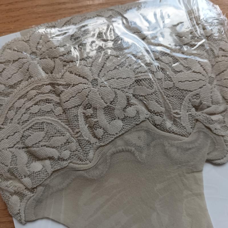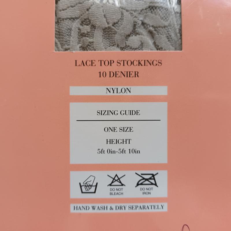 Винтажные чулки 10 den BHS с кружевом под пояс, размер универсальный, цвет Almond (миндаль).