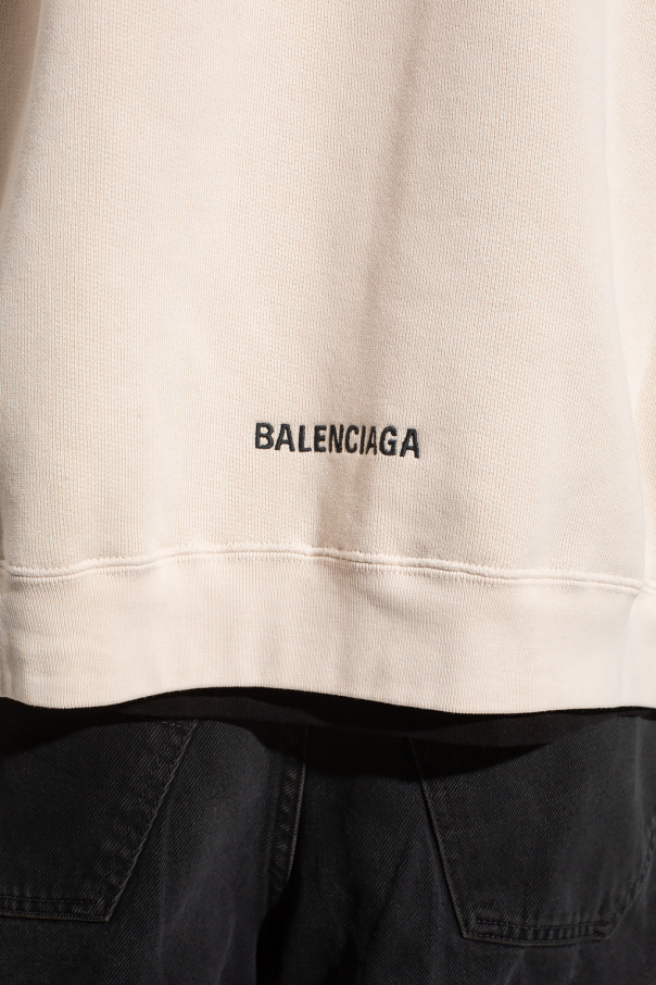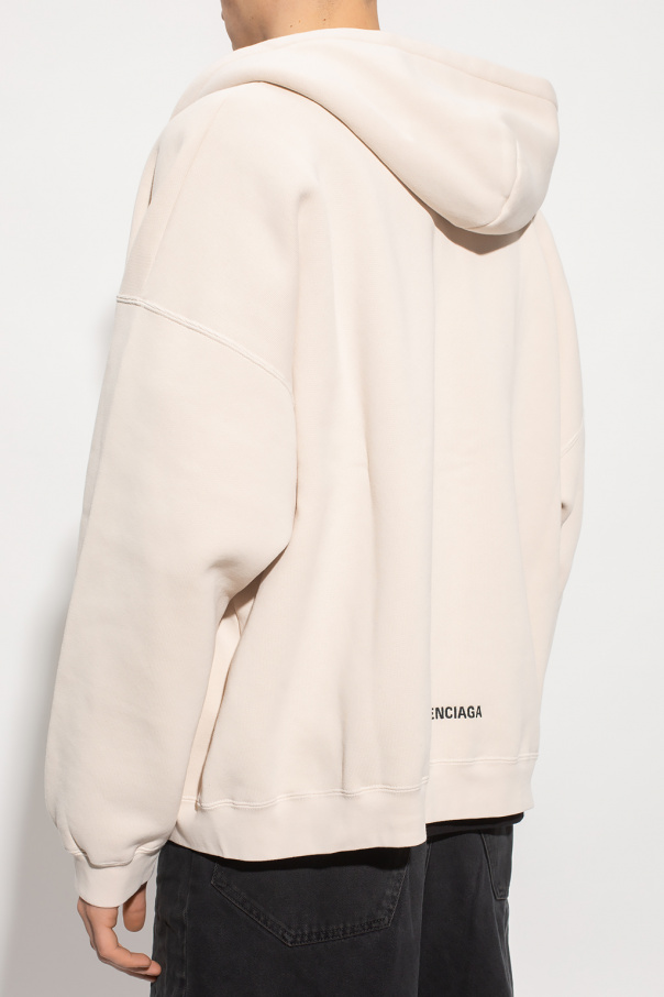Cream sweatshirt from Balenciaga. Made of cotton jersey, this style features two slip pockets, an elasticated bottom hem and cuffs and logo embroidery at the back.