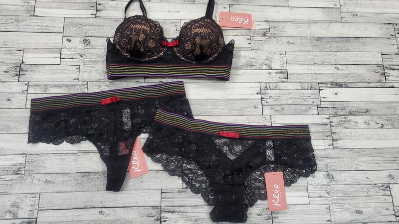 Матеріал:Поліамід ,Модель трусиків:Стринги ,Чашка:Push-up ,Форма бюстгальтера:Класична ,Стиль:Спортивний ,Посадка:Середня ,Декор:Мереживо ,Вид комплекту:З бюстгальтером ,Принт:У смужку , - Shipping