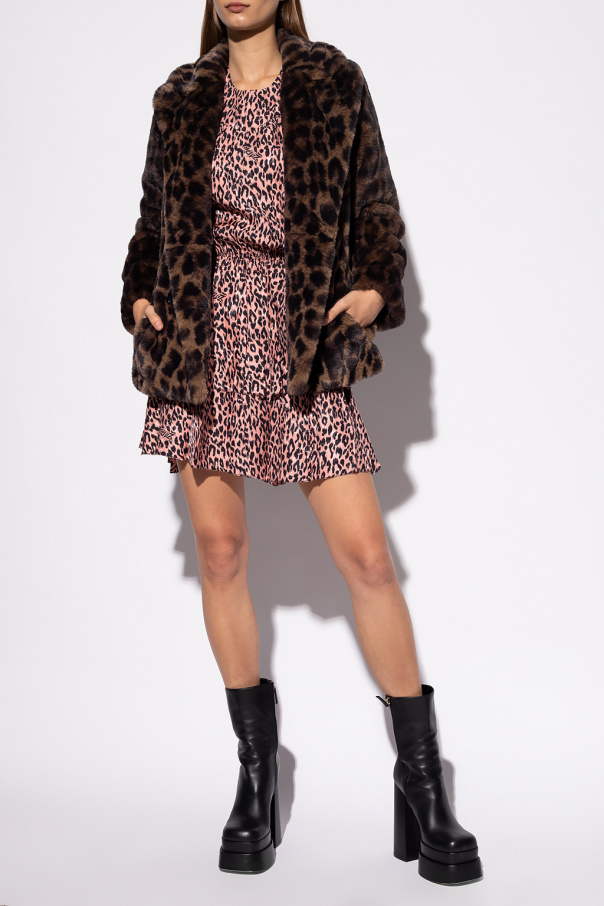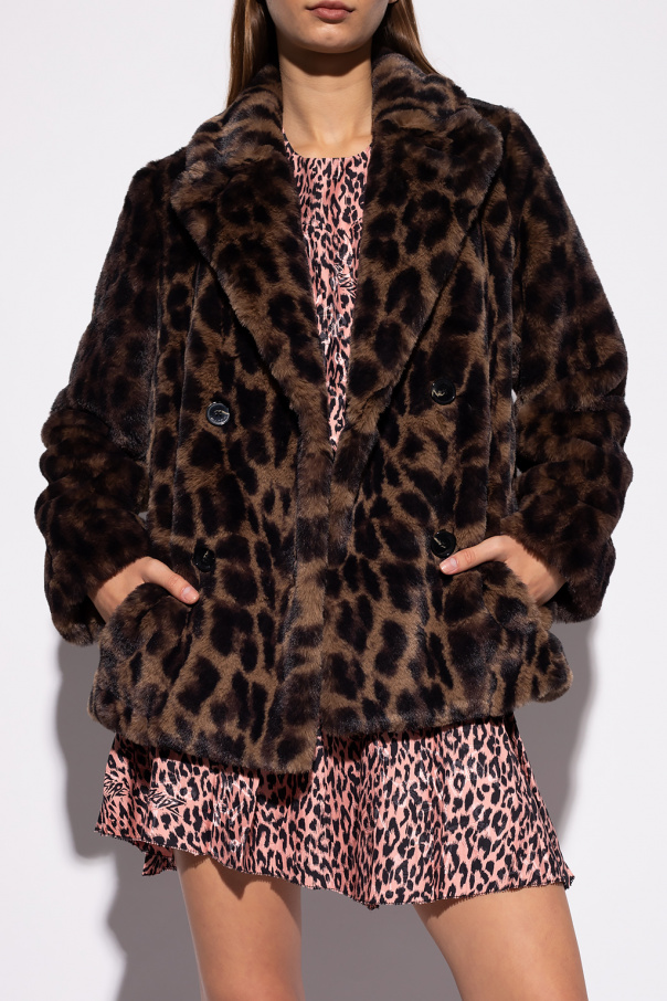Black brown and beige double-breasted jacket from Zadig & Voltaire. Crafted from faux fur, this garment features button fastenings and two front pockets.