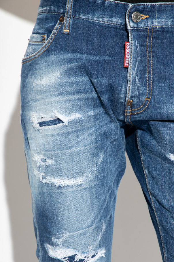Dark blue ‘Sexy Twist’ jeans from Dsquared2. Crafted with a slim fit, this pair features button fastenings, classic five pockets, a back logo patch and multiple distressed effects and exposed stitching details for a vintage feel.