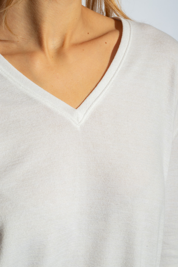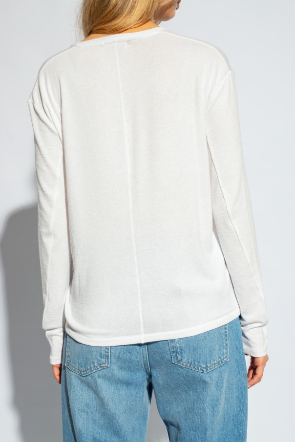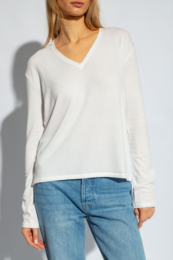 White top from Rag & Bone. Cut with a relaxed fit, this style features a V-neckline, long sleeves and side slits.