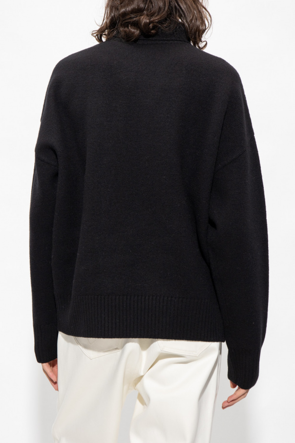Black turtleneck sweater from Ami Alexandre Mattiussi. Crafted from wool with a relaxed fit, this style features red ‘Ami De Coeur’ embroidery on the front and ribbed trims on the bottom hem and cuffs.