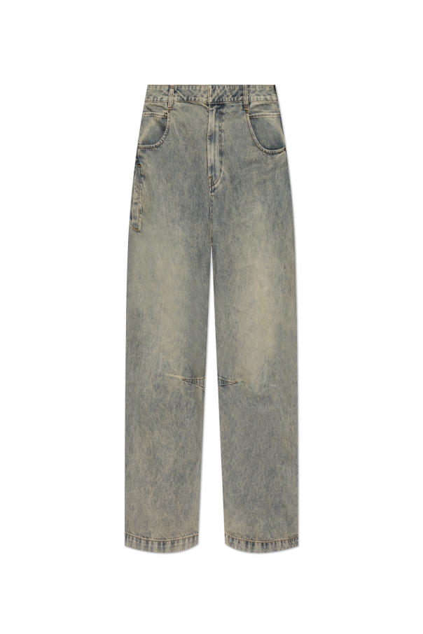 Presenting the Jeans with Logo by ENTIRE STUDIOS, a pair of trousers that epitomizes understated elegance. These distinguished bootcut jeans are crafted from premium, non-stretch 100% cotton, ensuring durability and a refined feel against the skin. The light, washed finish imbues these jeans with a vintage allure, while their relaxed fit offers unparalleled comfort. Classic pockets and meticulous stitching accentuate the casual yet sophisticated style, making them a versatile addition to any wardrobe. Free from overt branding, these jeans embrace a minimalist aesthetic. The blue-beige hue, coupled with a zip and button closure, enhances their timeless appeal. Why Choose This Product? Crafted from high-quality 100% cotton for a luxurious feel. Vintage-inspired design with a modern, relaxed fit. Minimalist style with classic detailing. Exclusively designed by ENTIRE STUDIOS.