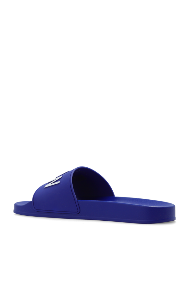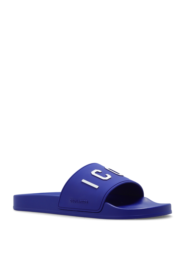 Dark blue slides from Dsquared2. Made of rubber, this model showcases a raised white ‘Icon’ motif and the brand\'s logo on the side.