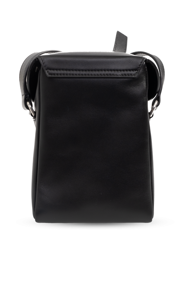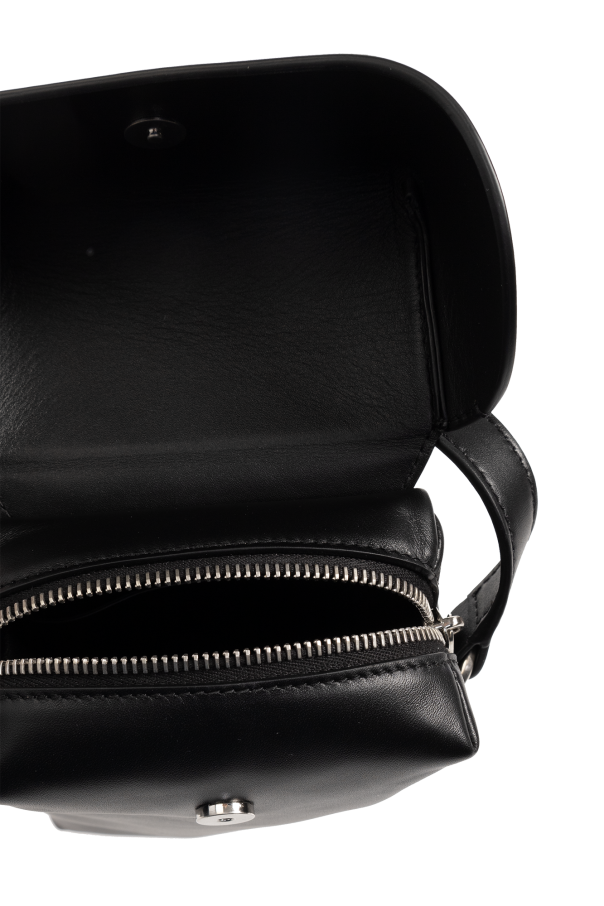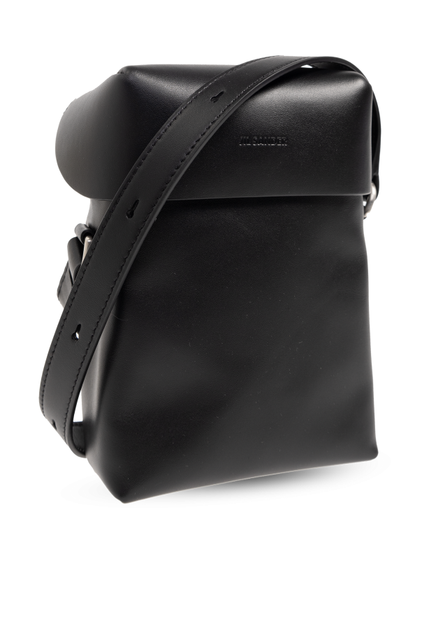 Black shoulder bag from JIL SANDER. Made of leather, this design secures with a magnetic snap and zip and showcases an embossed logo, an adjustable shoulder strap, silver-tone metal hardware and one internal compartment with a slip pocket.