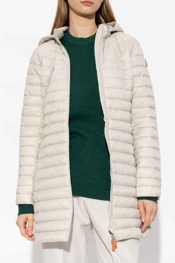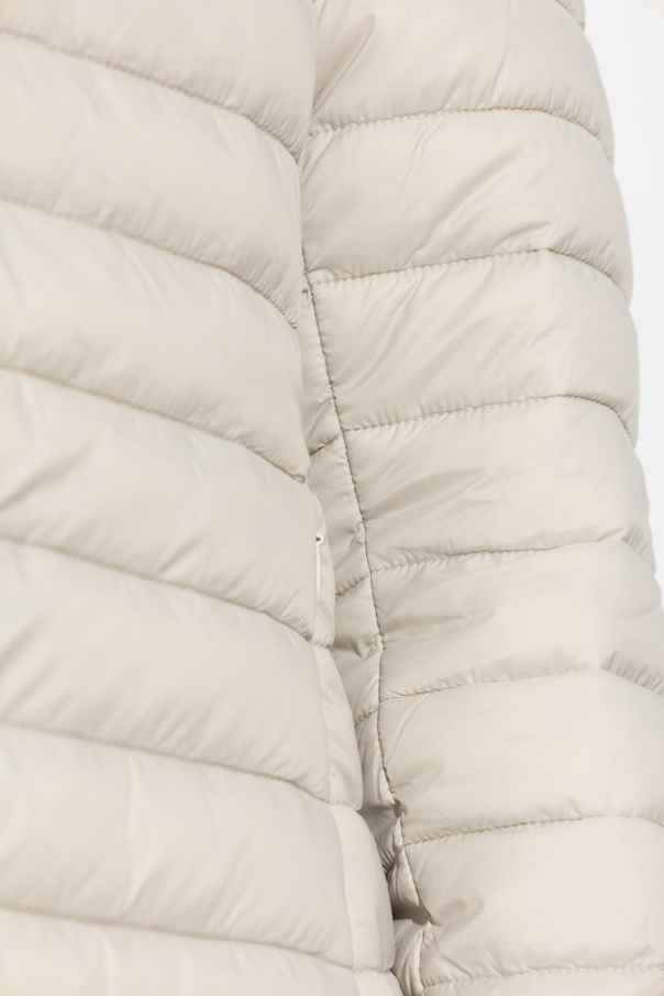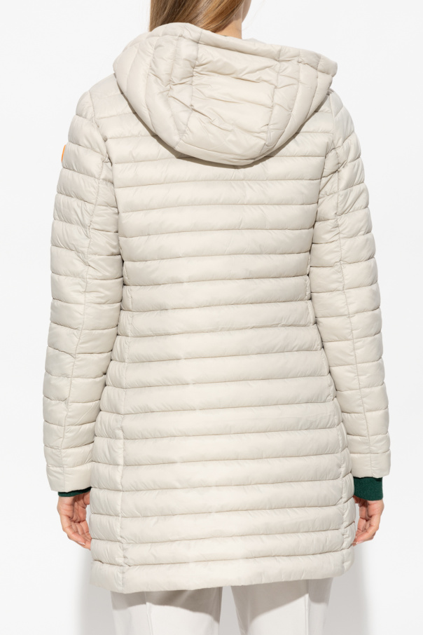 Light grey ‘Bryanna’ quilted jacket from Save The Duck. Fastened with a two-way zipper, this style features a detachable drawstring hood, two front zip pockets and long sleeves – one has a rubber logo patch. It\'s made with high-density 100% nylon fabric which guarantees weightlessness and fluffiness. It is thin yet resistant, thanks to its features it guarantees water repellency and wind protection, it absorbs humidity and dries rapidly.