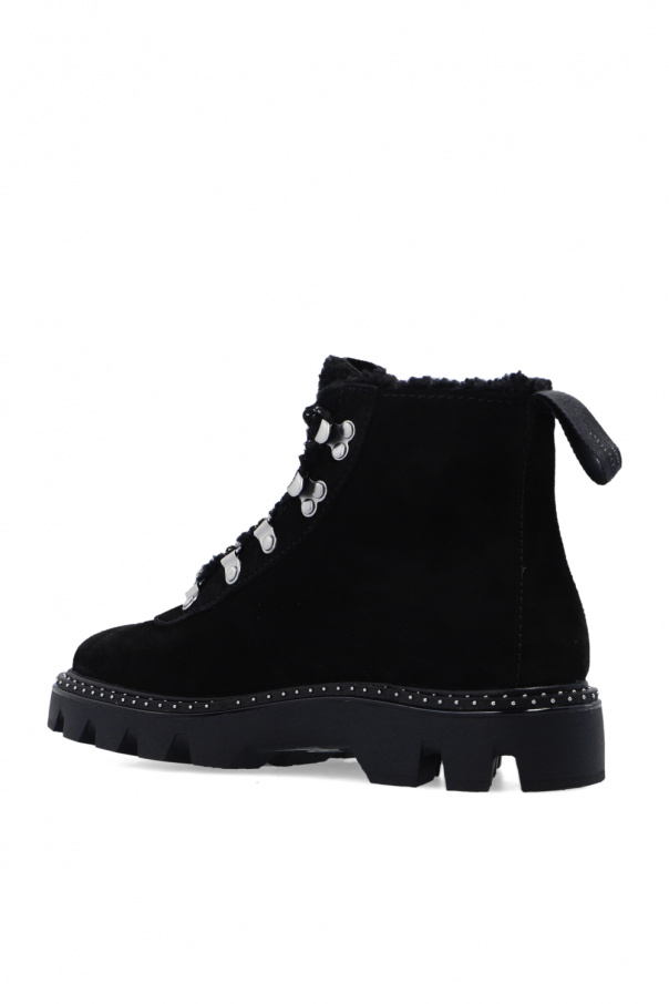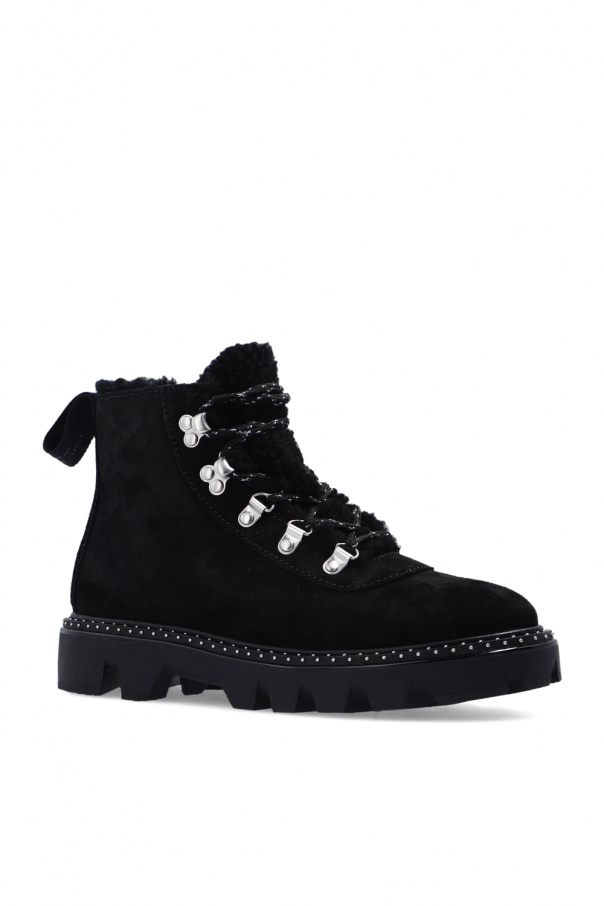Black ‘Quest’ ankle boots from Rag & Bone. Made of suede, this lace-up model is lined with soft shearling and features silver applications and a black rubber sole.