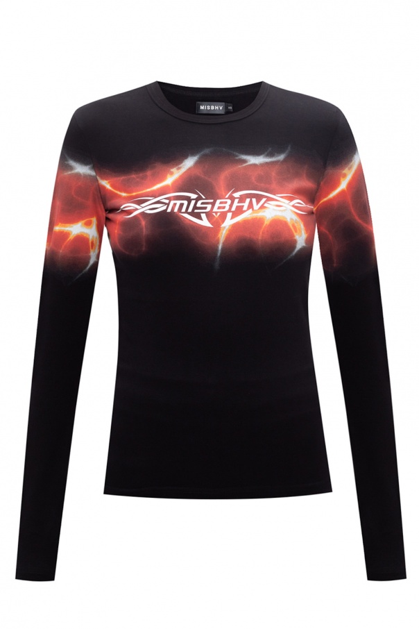 Black 'Barb Wire' crewneck T-shirt from MISBHV. Crafted from cotton, this long-sleeved style was embellished with a colourful graphic print, including white logo.