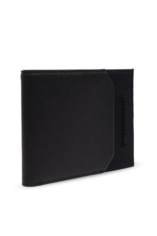 Introducing the Logo Wallet from the distinguished collection of Emporio Armani, a brand synonymous with luxury and sophistication. This wallet, with its classic rectangular silhouette and rounded corners, exudes an air of timeless elegance. Crafted from premium black polyurethane, its textured exterior is adorned with the embossed EMPORIO ARMANI logo, a hallmark of its prestigious lineage. The interior is thoughtfully designed, offering a plethora of organizational options with a pocket for bills, two slip pockets, and an impressive eight card slots, catering to the modern individual\'s needs. The wallet\'s dominant black hue enhances its versatility, making it an impeccable accessory for those who appreciate style and quality. As the only line personally designed by Giorgio Armani, Emporio Armani seamlessly blends sports-inspired minimalism with luxurious simplicity, adored by discerning clientele worldwide. Why Choose This Product? Timeless Design: Classic shape with modern embellishments. Luxury Material: High-quality polyurethane for a sleek finish. Ample Storage: Eight card slots and multiple pockets for organization. Brand Prestige: Embossed logo signifies elegance and authenticity.