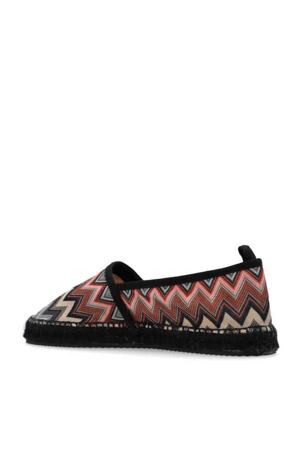 Introducing the Missoni Colorful Espadrilles, a testament to modern elegance and vibrant design. Crafted with exceptional attention to detail, these espadrilles feature a flat, jute-woven sole characteristic of traditional espadrille footwear, providing a perfect blend of comfort and style for warm-weather wear. The upper part of the shoe is adorned with a multicolored, geometric zigzag pattern in shades of black, white, various tones of red, and beige, presenting an eye-catching and contemporary aesthetic. The absence of visible logos emphasizes the importance of design and pattern in the identity of these shoes. Inside, the espadrilles boast an orange-hued lining, further enriching the color palette and ensuring a soft, leather comfort against the skin. With their classic, round-toe silhouette and a black, rubber sole for added durability and grip, these Missoni espadrilles epitomize the fusion of fashion-forward design and practicality. The versatile, patterned fabric and the quality leather interior make these shoes not only a stylish choice but also a testament to luxurious craftsmanship. Why Purchase This Product? Exclusive Missoni design with a striking geometric pattern. Combination of premium materials: fabric upper and leather interior for supreme comfort. Durable rubber sole for longevity and everyday wear. Perfect for adding a pop of color and pattern to any summer outfit. Represents a blend of traditional craftsmanship and modern aesthetics.