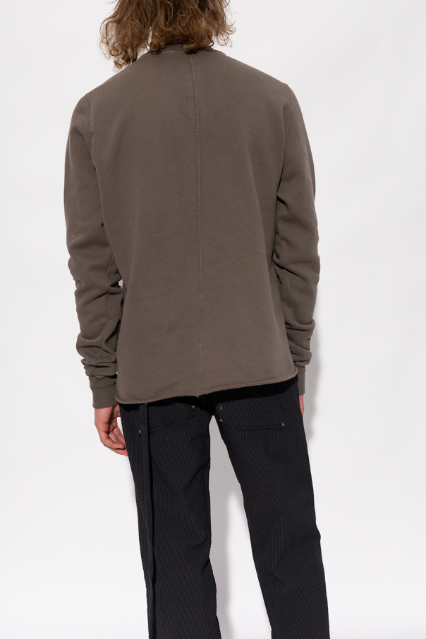 Brown crewneck sweatshirt from Rick Owens DRKSHDW. Made of cotton, this design features a cream print, ribbed trims at the neck and cuffs, raw-trimmed hem and the brand’s signature strap with a logo.