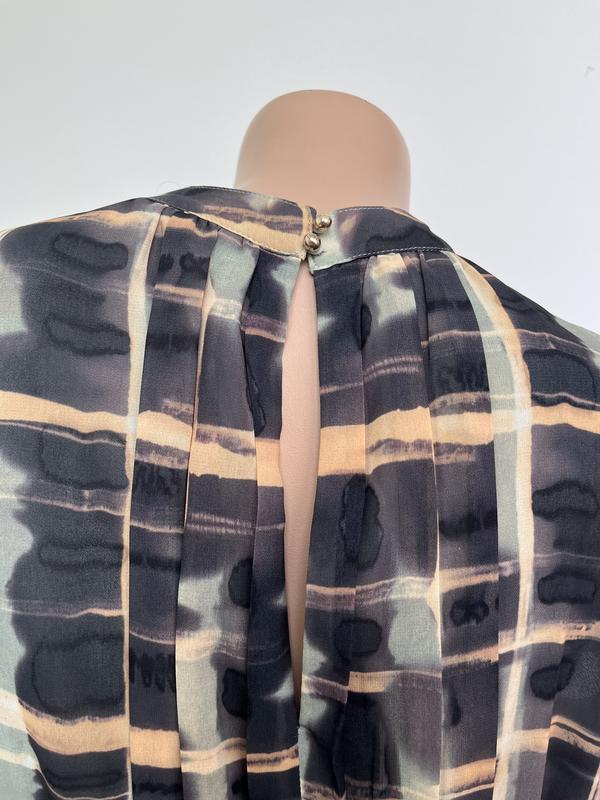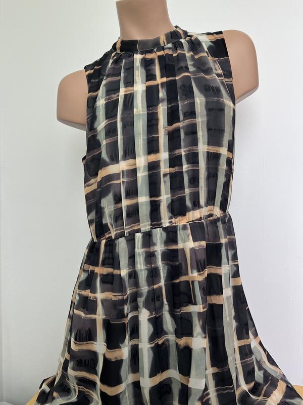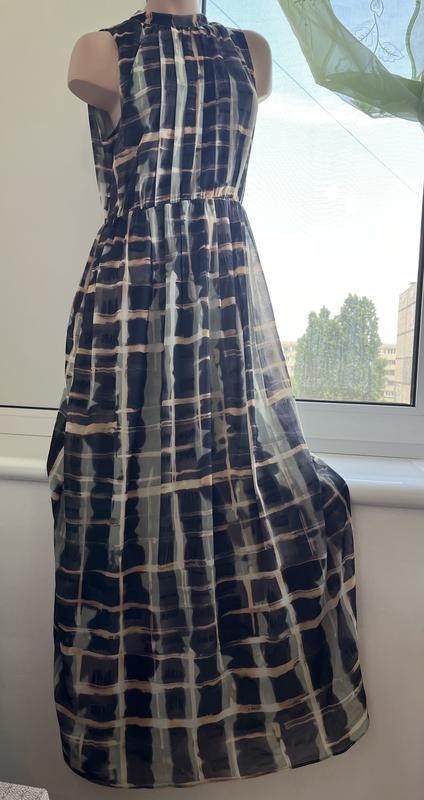 Эффектное платье на подкладке. Не мнется.Размер M/L. Длина: 145, талия: 74 ( тянется до 92), полуобхват груди: 48. Есть резервная пуговица. Стан нового.