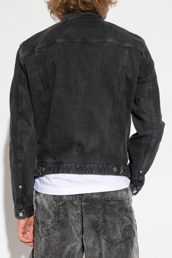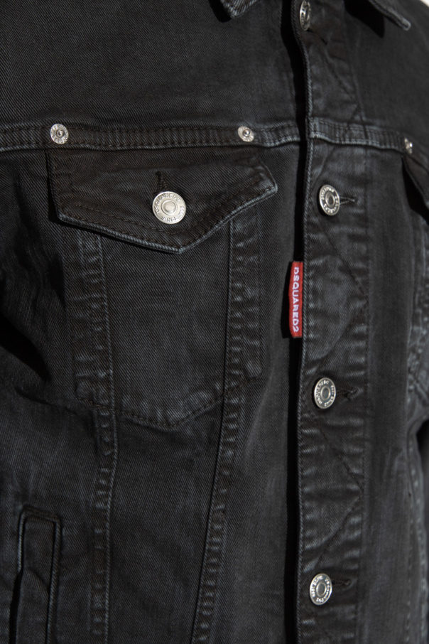 Black denim jacket from Dsquared2. Crafted from cotton with a vintage effect, this style features button fastenings, a red an white logo patch, long sleeves, two welt pockets and two flapped pockets.