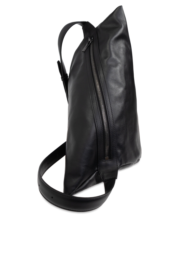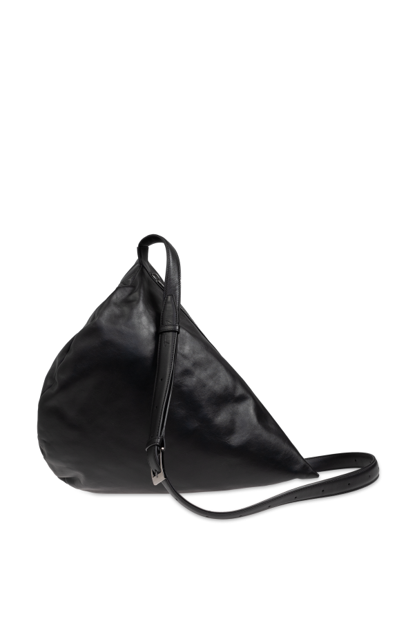 Introducing the Leather Shoulder Bag by Discord Yohji Yamamoto, an exquisite accessory that marries avant-garde design with understated elegance. This bag, with its distinctive asymmetrical triangular shape, is a testament to innovative craftsmanship. Made from smooth, premium leather, it exudes a luxurious aura, perfect for those with a discerning eye for fashion. The bag features a sleek, visible zipper running along one side, infusing a contemporary edge into its minimalist silhouette. The adjustable strap ensures comfortable shoulder wear, making it a versatile piece for any occasion. Inside, you\'ll find a spacious compartment and a zippered pocket, providing practicality without compromising style. True to the brand\'s ethos, this unisex bag showcases a minimalist design devoid of visible logos, allowing the artistry of its form to shine. It\'s a quintessential piece from Discord Yohji Yamamoto, a brand renowned for its rebellious spirit and Japanese street culture influences. Why Purchase This Product? Unique asymmetrical design Crafted from high-quality leather Minimalist elegance with modern flair Adjustable strap for versatile wear Practical interior with a zippered pocket