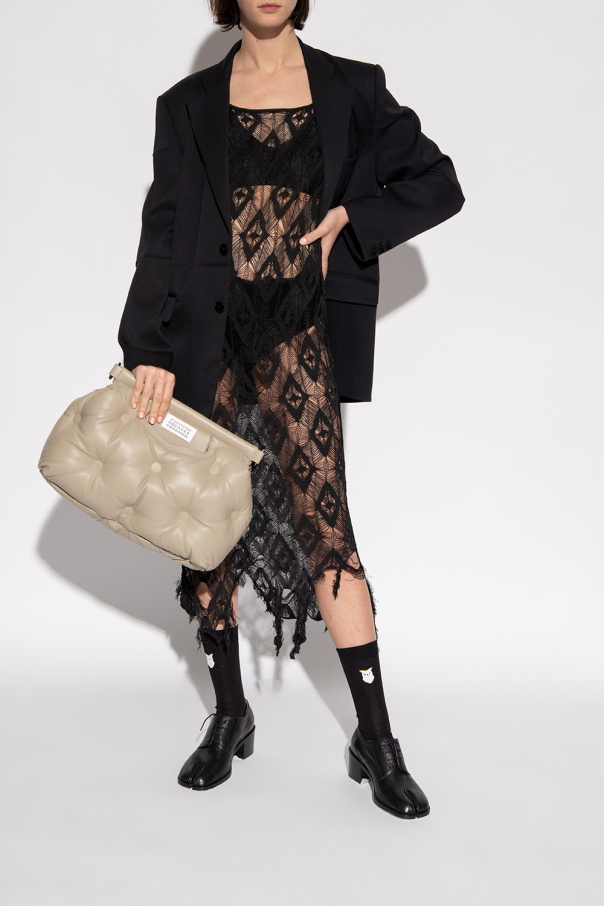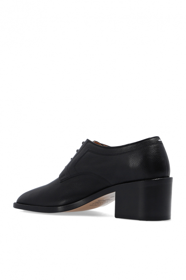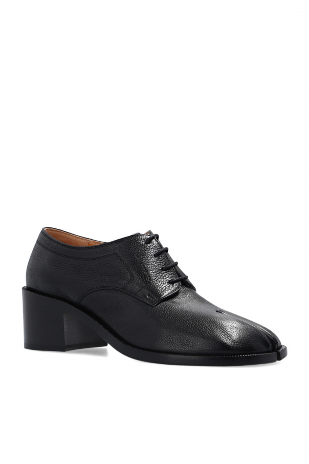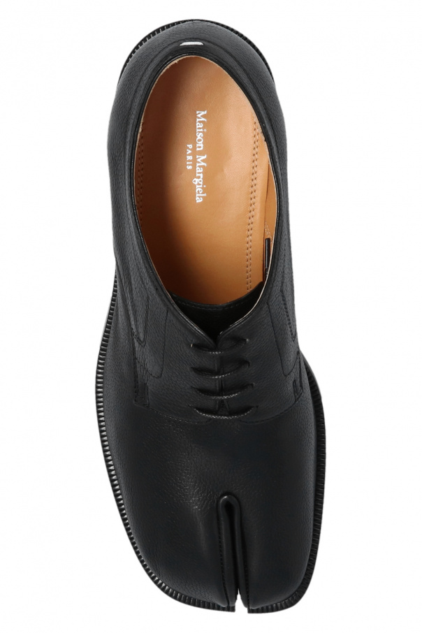 Black pumps from Maison Margiela. Made of bovine leather, this lace-up pair features the iconic Tabi toe and leather sole in beige and black.