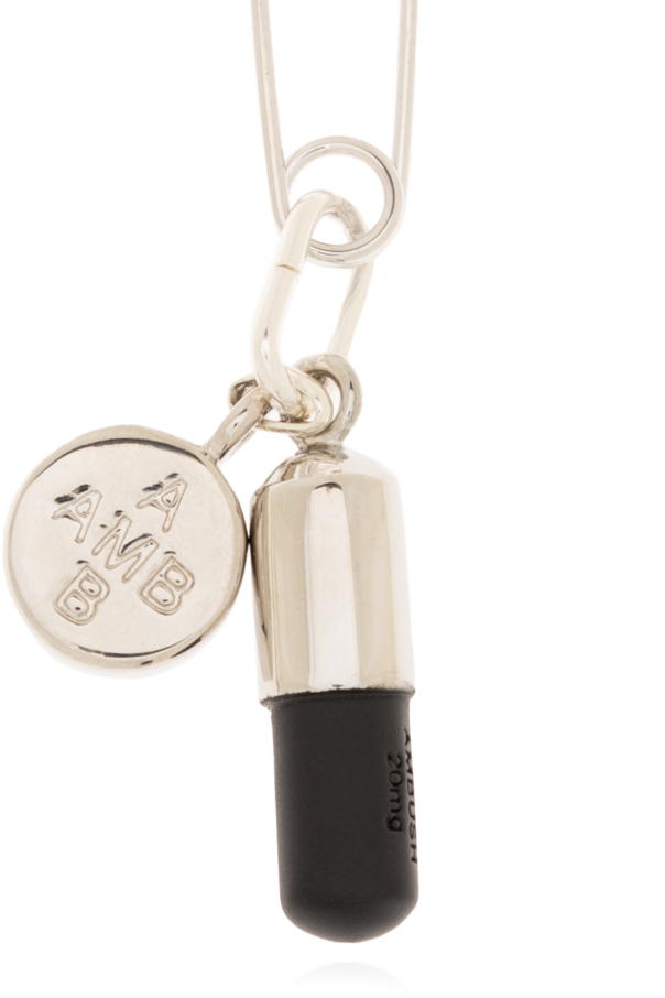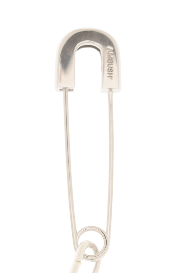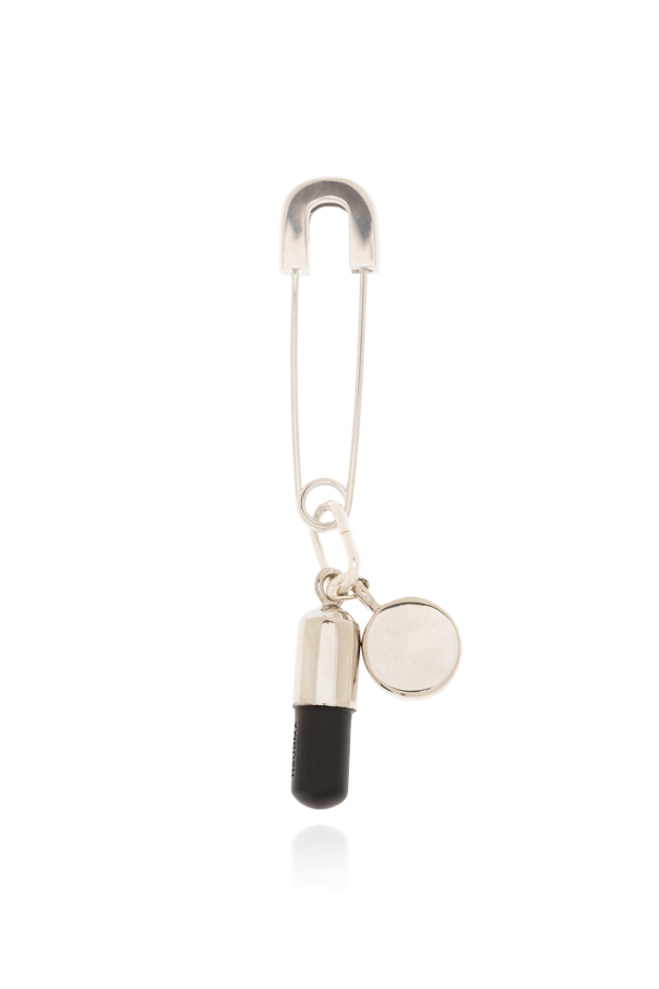 Single silver-tone safety pin earring from Ambush. Made of brass, this item features pill charms in black and silver-tone.